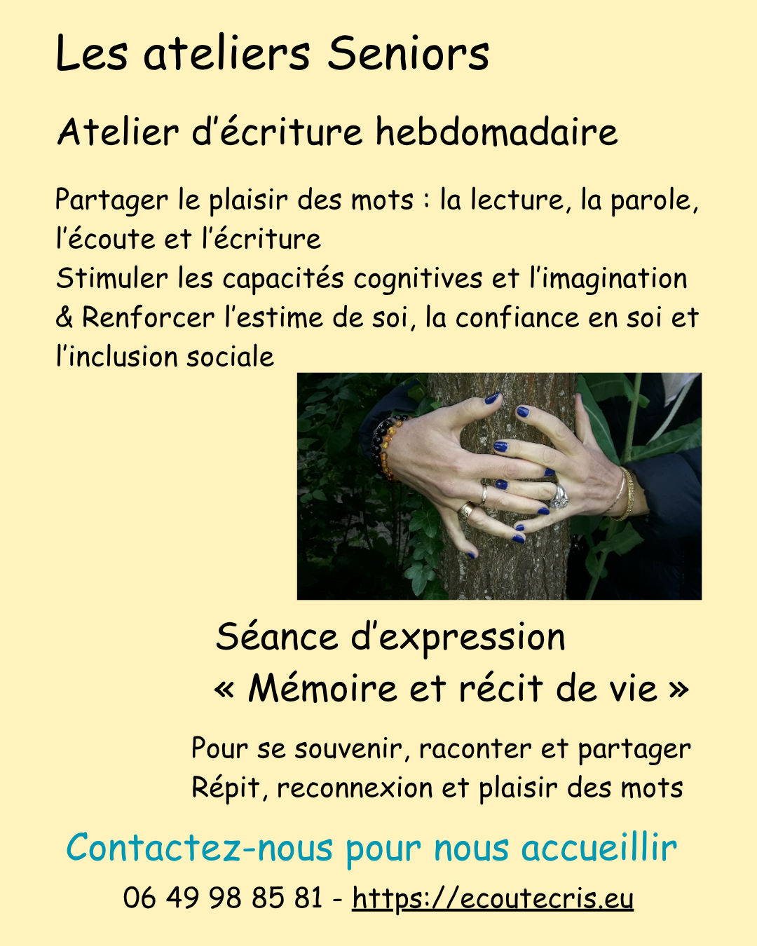 Les adultes pour l’atelier Poésie de Noisiel, l’atelier d’écriture de Lognes, l’atelier d’écriture Seniors de Tournan-en-Brie, lors de notre passage dans vos groupes de paroles, les médiathèques etc.